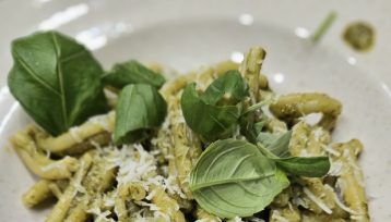 Doprawiamy dla smaku solą, pieprzem i jeśli lubicie ostre smaki, peperoncino. Po 5-7 minutach dodajemy mrożony groszek i dusimy aż się rozmrozi i będzie gorący. Dodajemy masło, pietruszkę. Dusimy 5 minut. Dodajemy przygotowane ziemniaki i całość delikatnie mieszamy delikatnie (tak aby nie połamać ziemniaków).